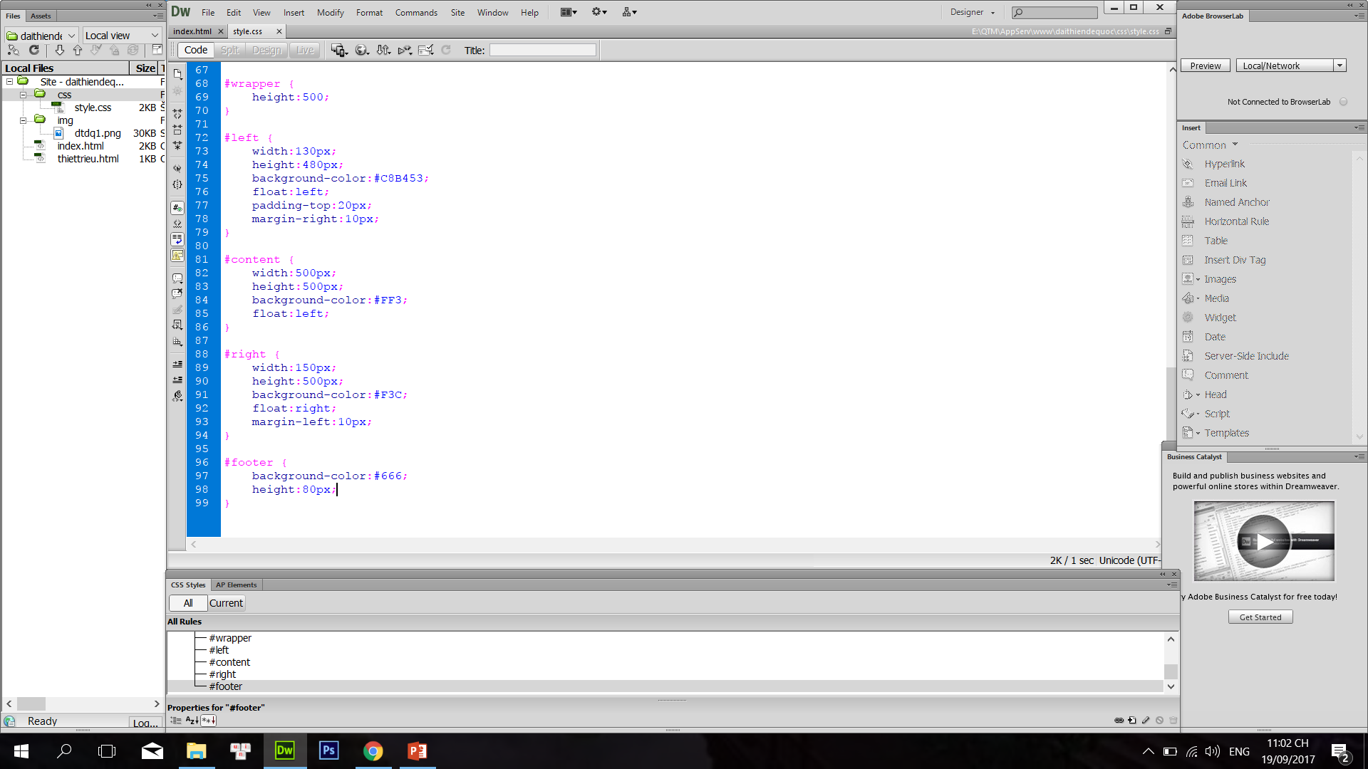 Khi bạn đặt thuộc tính float cho các thành phần thì các thành phần sau nó cũng bị ảnh hưởng. Ví dụ foat: left thì cái sau nó sẽ dồn lên chẳng hạn. Và #footer của bạn trong trường hợp này bị ảnh hưởng bởi #right.