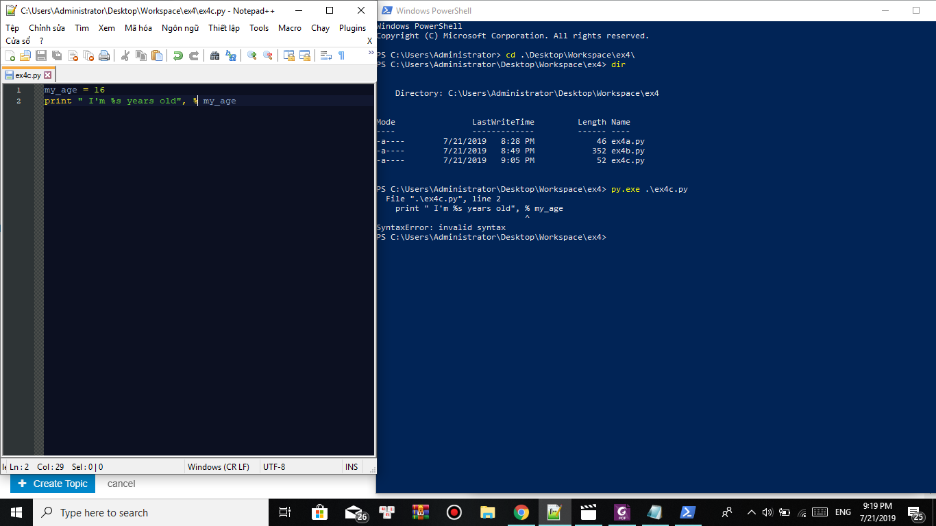Em mới học python theo sách Learn python the hard way mà đến bài Variables and print thì em không thể làm theo cách của tác giả là sao ạ