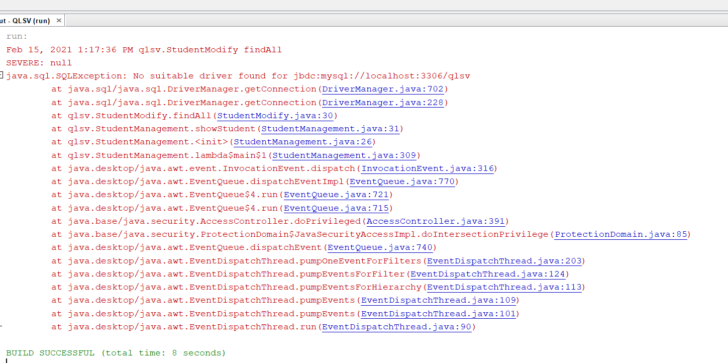 Lỗi Java kết nối với SQL