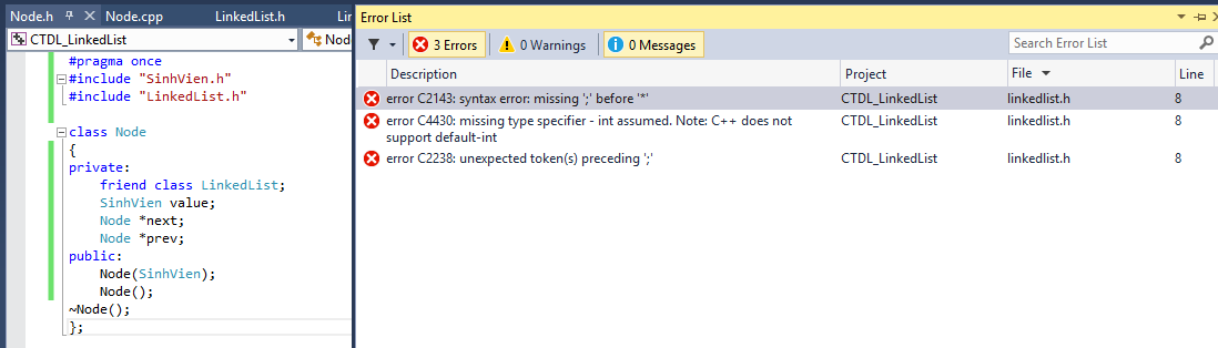 Mình xây dựng danh sách liên kết đôi khi khai báo con trỏ first bị lỗi loay hoay mãi không khắc phục được