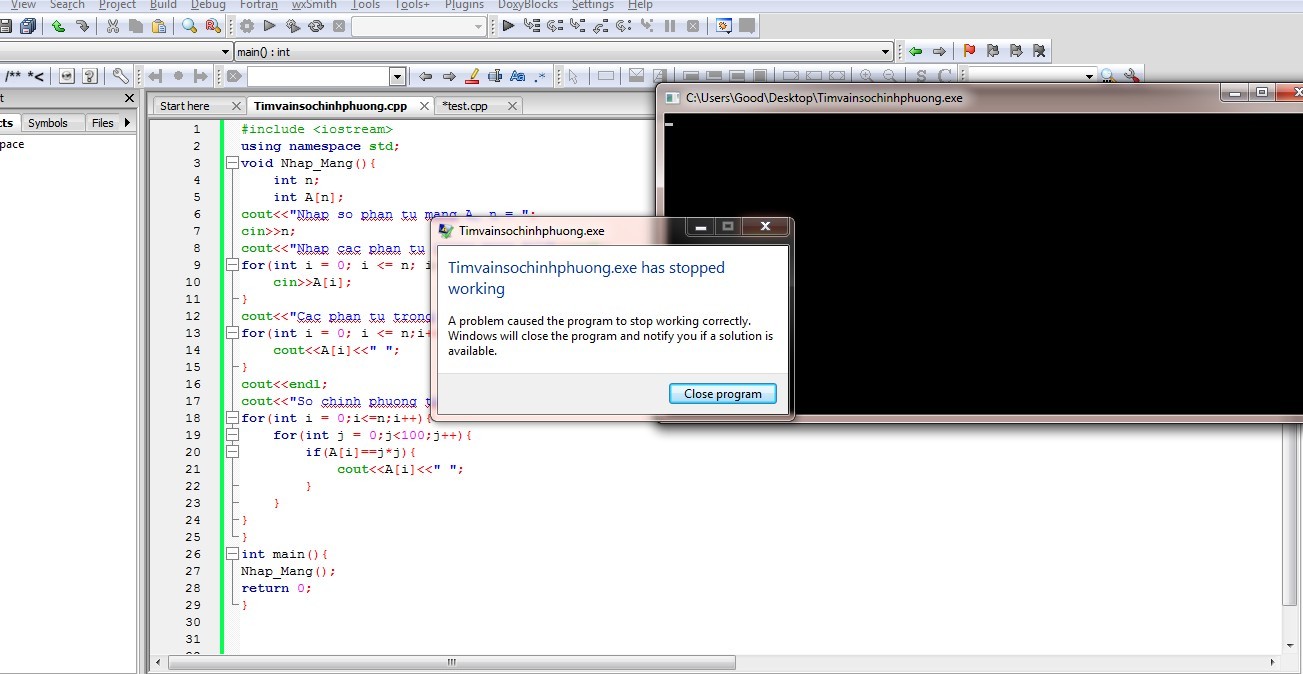 cout<<"So chinh phuong trong day"<<endl;