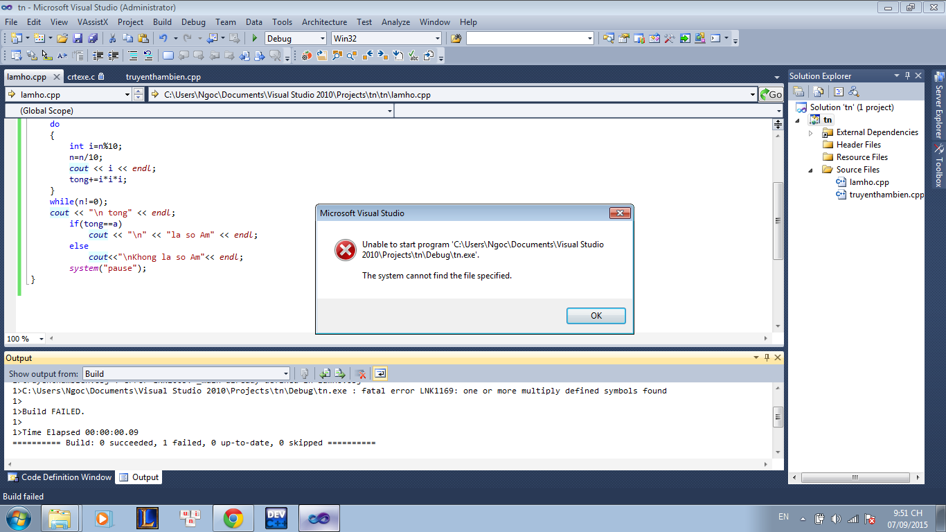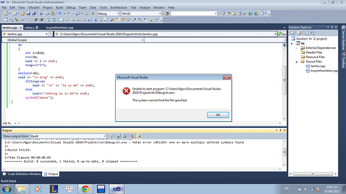 nó báo có một cái gì đó (biến, hàm…) được khai báo nhiều lần. Lưu ý là nó tính cả trong 2 file lamho.cpp và truyenthambien.cpp đấy nhé.