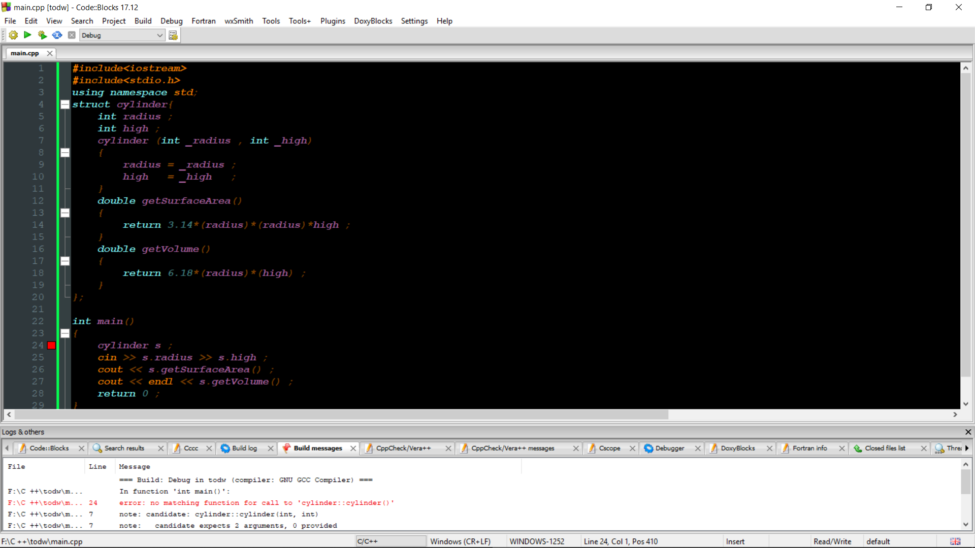 Em làm cỗ struct thì nó hiển thị lỗi chỗ dòng 24 mà em không biết sửa thế nào ạ :(( anh chị vào xem giúp em với ạ :((
