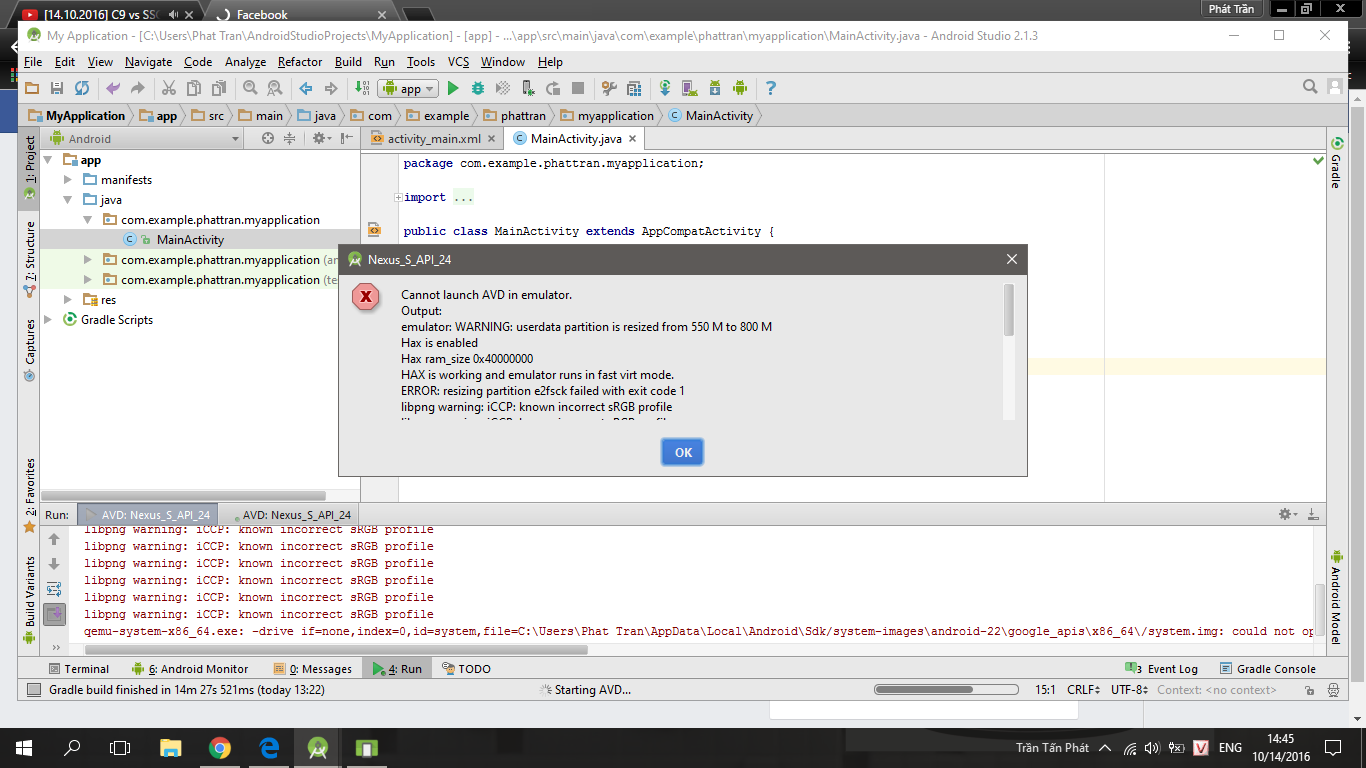 Lỗi khi tạo máy ảo Android bằng Android Studio