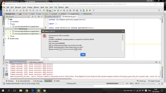 đừng bao giờ dùng máy ảo của Android Studio nhé vì n quá lâu.b nên test trên máy Genymotion hoặc là có máy dt sd Android thì test luôn ý cho n nhanh dùng máy ảo quá tốn tg