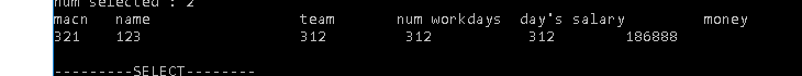 printf("%-6s %-20s %-10s %4s %13s %13s\n", "macn", "name", "team", "num workdays", "day's salary", "money");