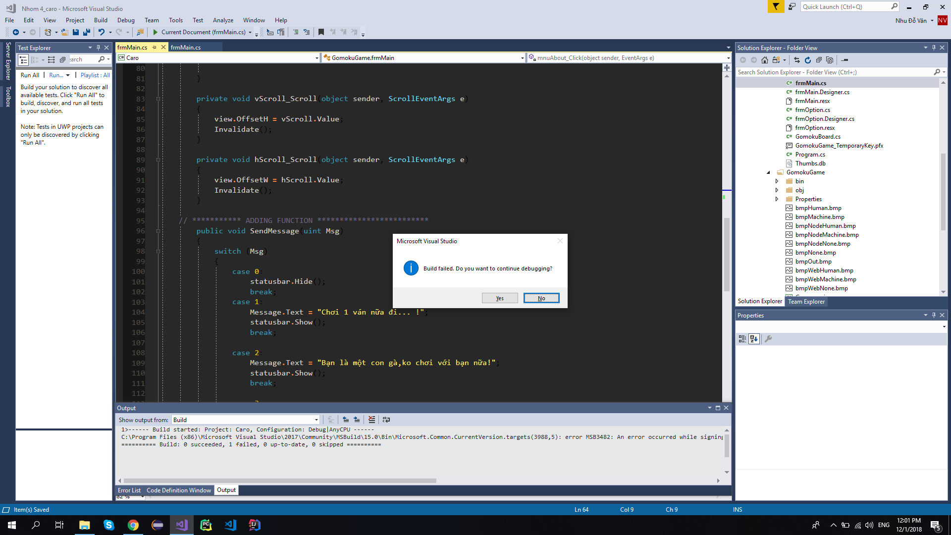Lỗi không build được code trên visual studio 2017