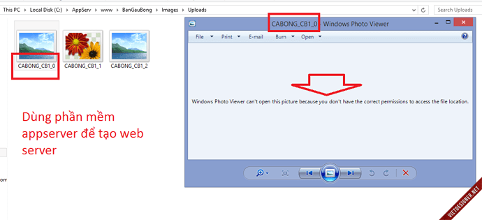mình có 1 dự án upload ảnh lên host, upload thành công nhưng khi mở ảnh để đọc nó báo không có quyền mở file, vậy phải làm sao ợ