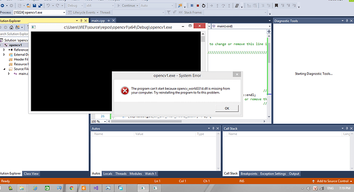 Lỗi không đọc được thư viện opencv_world331d khi chạy opencv trong visual studio 2017