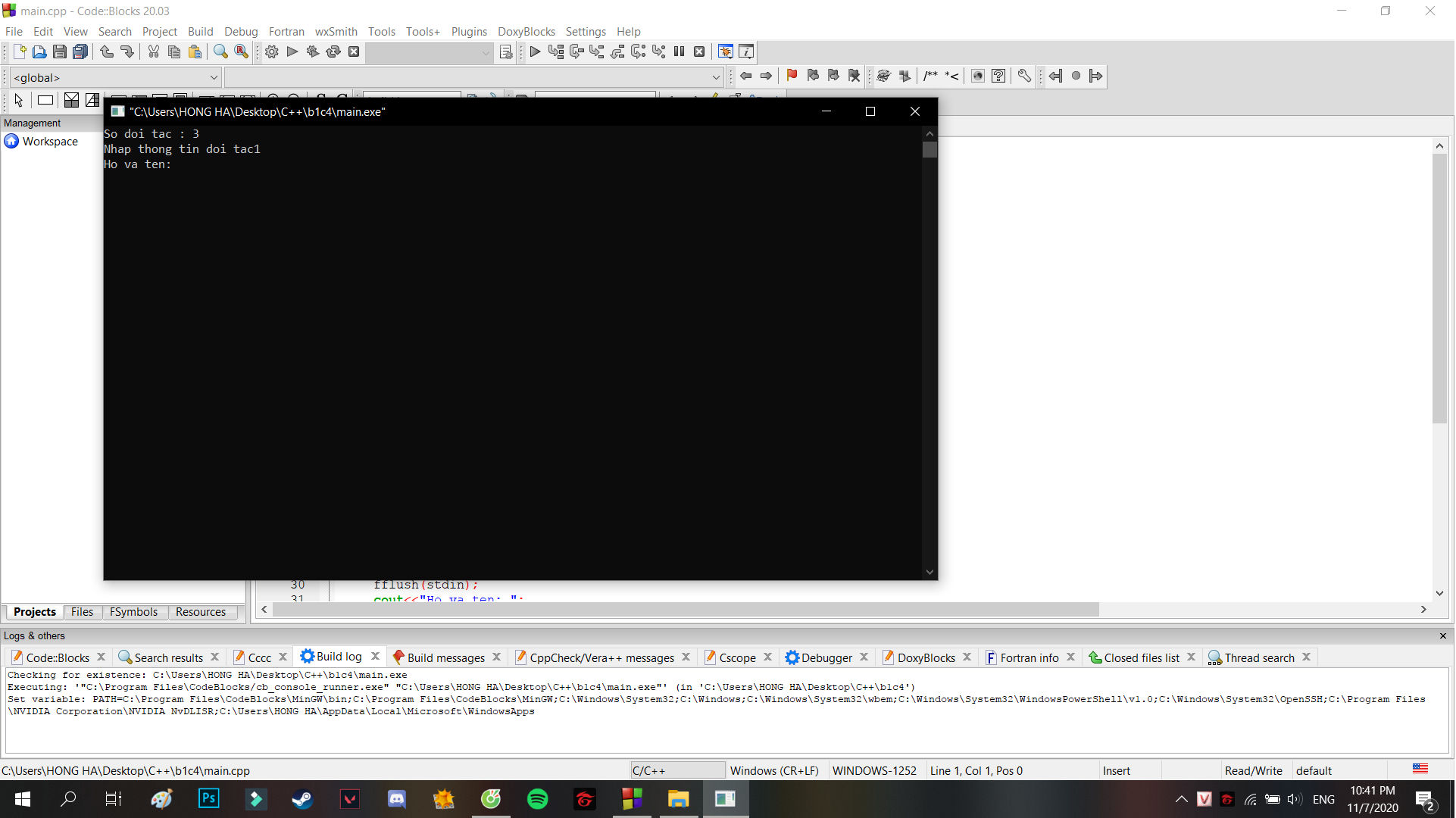 mình nhìn nhầm tí lúc trước là khi chạy khi nhập thông tin người đầu tiên là nó nhảy xuống dòng cơ quann luôn k cho nhập họ và tên, h mình sửa đc rồi cảm ơn bạn