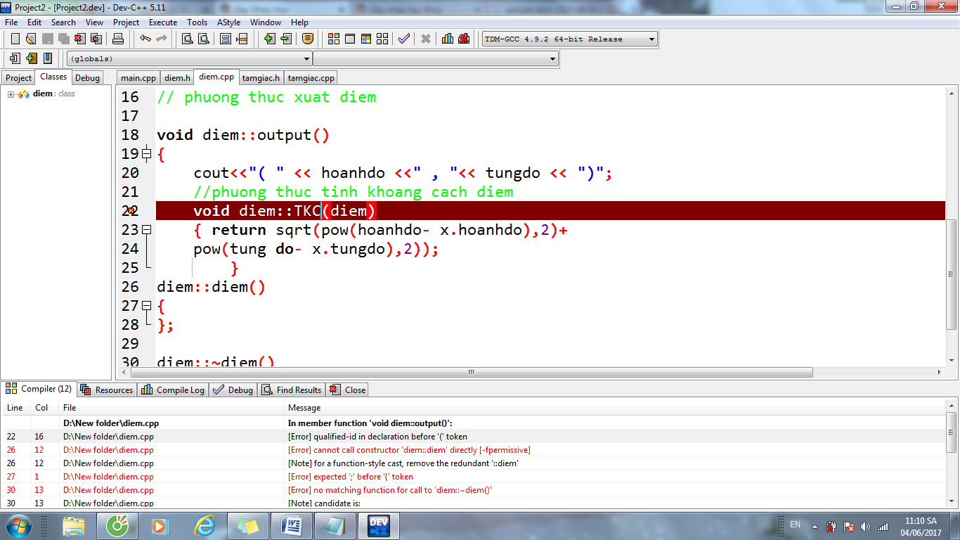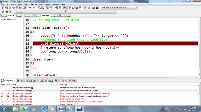 - Dòng 22: bạn đưa void diem::TKC ra ngoài; và void không có return giá trị.