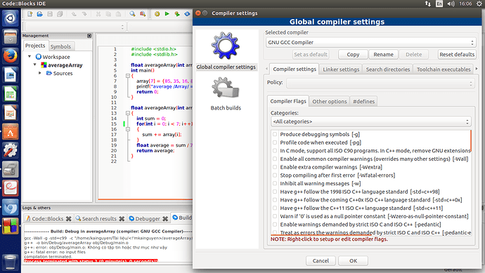GNU GCC compiler được tích hợp trong CodeBlocks mà phải không anh?