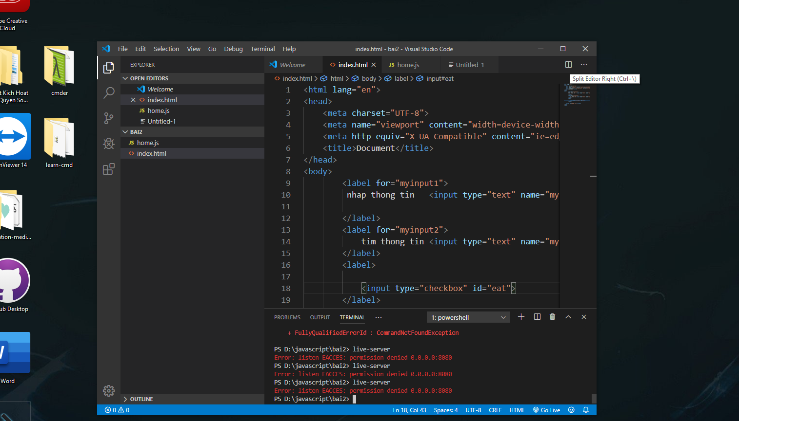 Em bị lỗi live-server ai biết chỉ em với