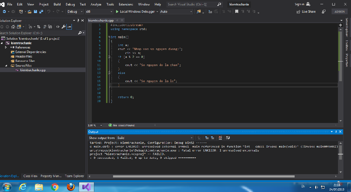 Lỗi LNK1120 khi lập trình C++ trên VS