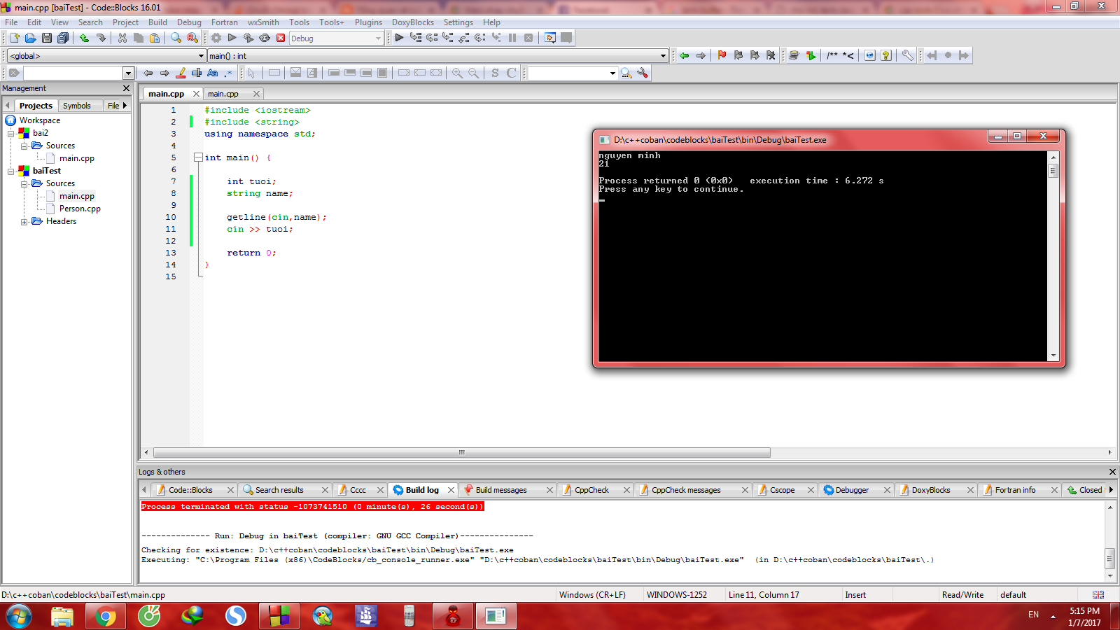 Chương trình mình nhập tên trước , tuổi sau thì chạy oke . Như trong hình dưới