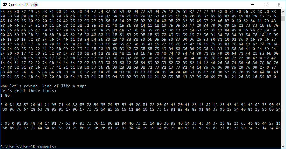 print "Now let's rewind, kind of like a tape."