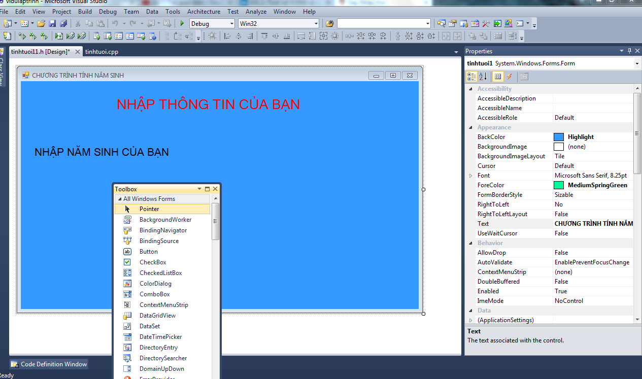 mọi người giúp mình với, làm sao để tạo ô trống cho người dùng nhập vào năm sinh