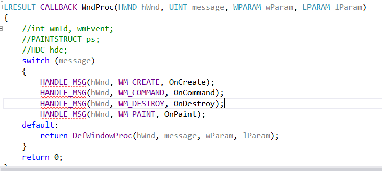 Mọi người cho em hỏi vì sao mấy chỗ HANDLE_MSG này lại lỗi đỏ ạ ? (Đã include <WindowsX.h>)