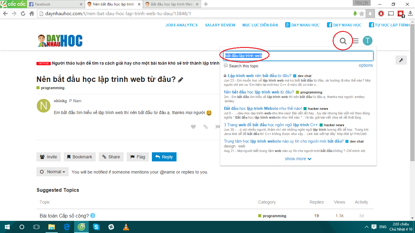 Bắt đầu từ việc sử dụng công cụ Search của diễn đàn bạn nhé