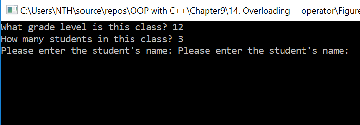 Mọi người cho mình hỏi ở Constructor của mình, tại sao khi nhập số sinh viên của lớp xong thì nó hiện ra 2 lần string "Please enter the student’s name: " ạ? Và cách troubleshoot là gì? Mình đã thữ dùng fflush(stdin); sau khi nhập số nhưng không hiệu quả
