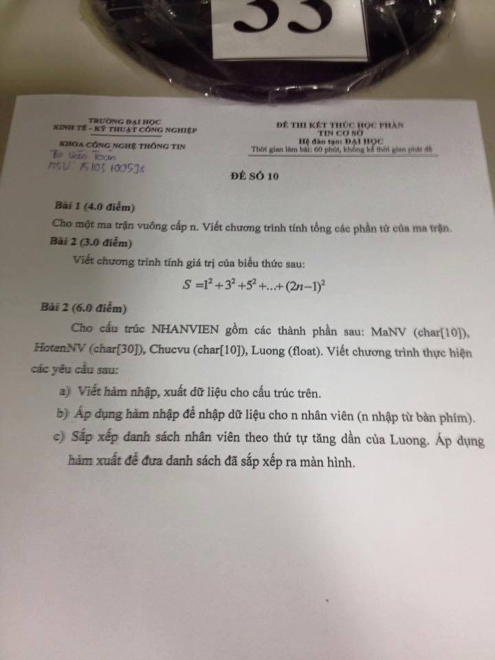 sau đó thêm hàm sắp xếp nhân viên theo lương, (nên sử dụng thuật toán Bubble Sort, tự google)