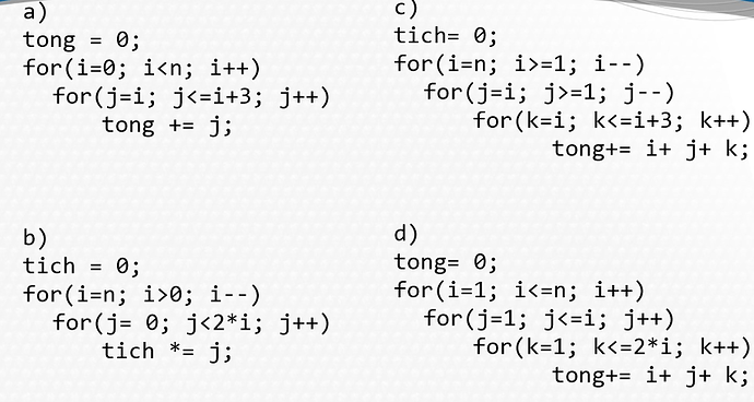 Nhờ giải bải tập đánh giá độ phức tạp thuật toán