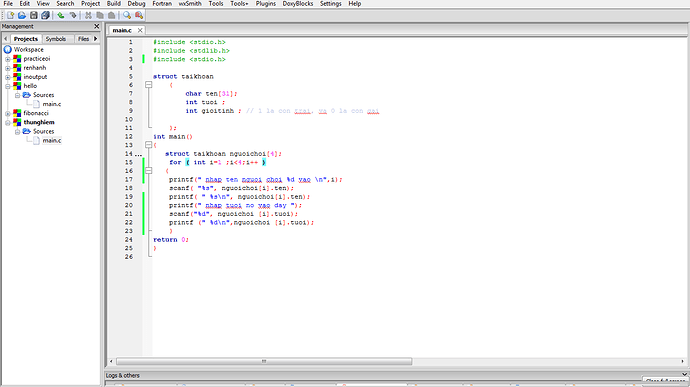 Mọi người ơi em muốn viết 1 chương trình nhỏ để nhập xuất tên và tuổi của 3 người dùng Struct mà không hiểu sao nó không hoạt động mọi người chỉ em với !!