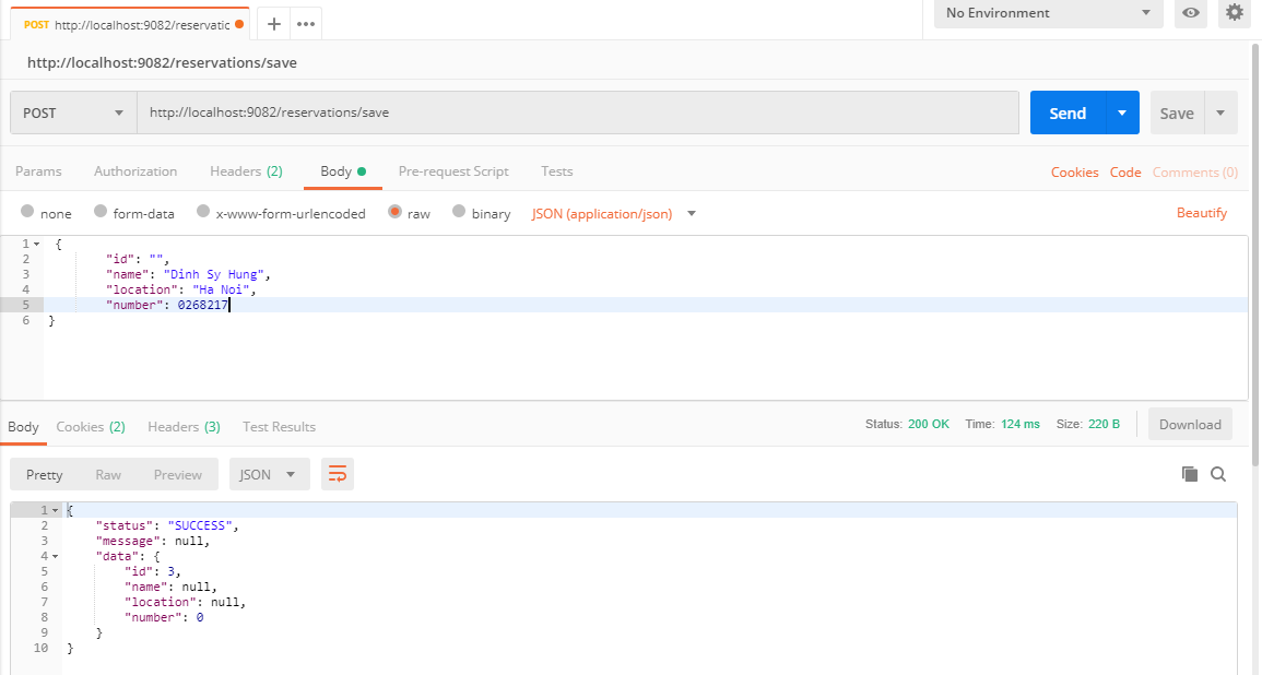 Null khi truyền data từ POSTMAN vào databse RestAPI