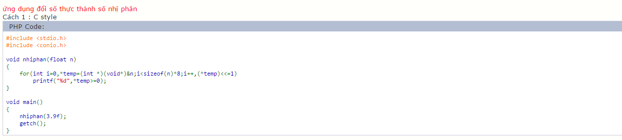 thì như cái tên của hàm, in dãy bit của 1 biến float. Nhưng code này nó code tào lao rồi =)))
