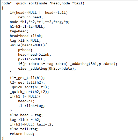 hàm _quick_sort trả về con trỏ đầu của danh sách liên kết đơn