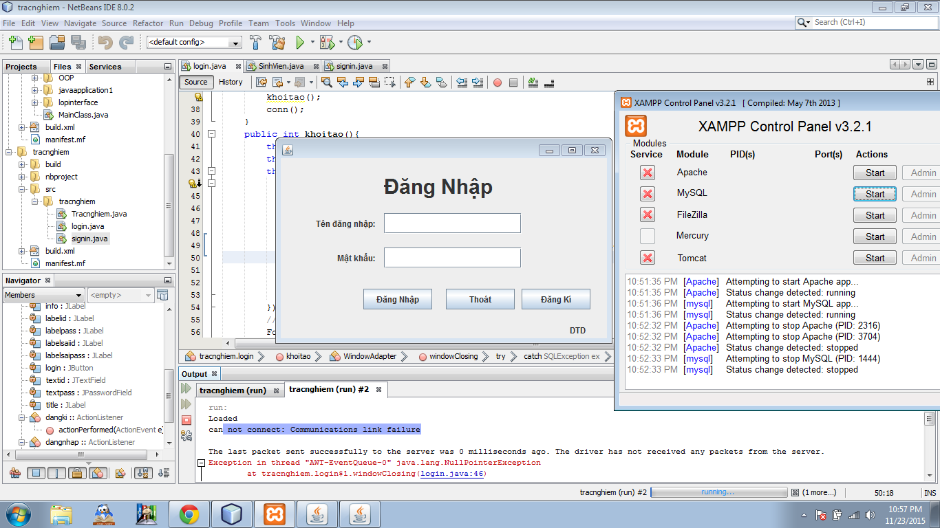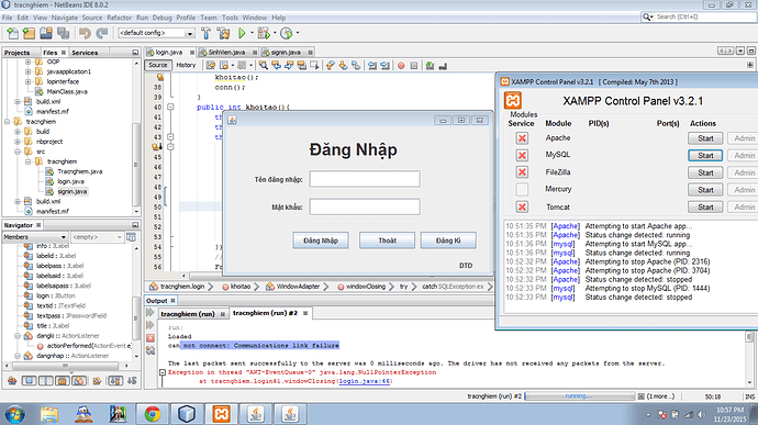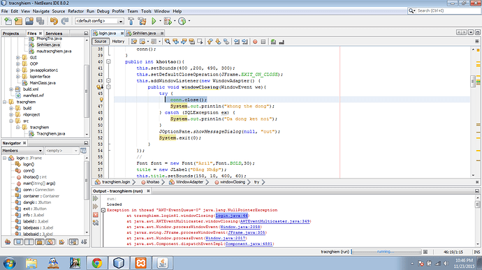 Có đầy đủ hết, khi mình mở cái server nó bắt ngoại lệ bth. tắt nó không thể bắt vào bấm X để thoát không được luôn.