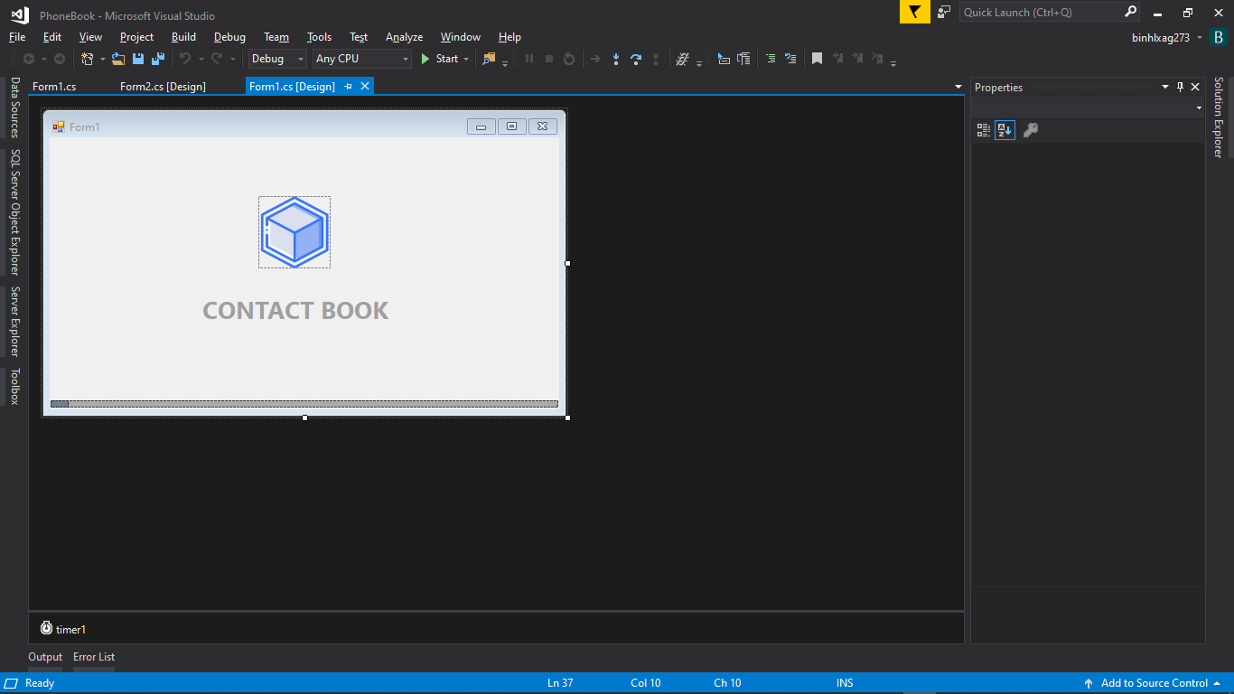 Em có tạo 1 cái Timer ở toolbox xong double click vào nó, xong rồi nhập code thế này, còn khởi chạy Timer là thế nào ạ: