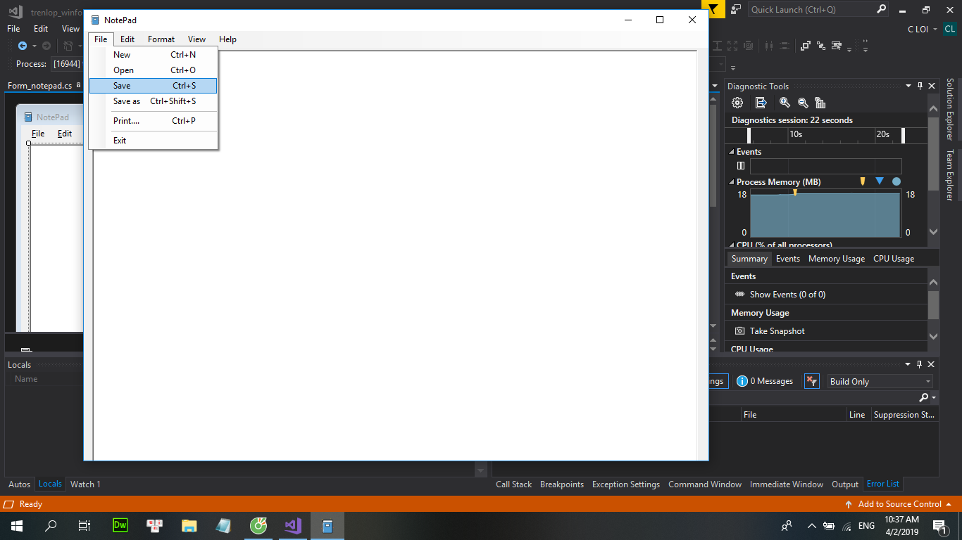 mình đang có bài tập về thiết kế và code chương trình như notepad của windows, đến đoạn code save và save as.