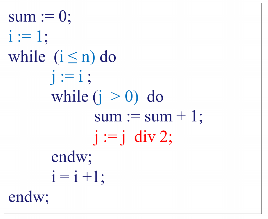 Em đang lăn tăn việc có dòng code j = j div 2; làm em không tính được số phép vòng lặp while ở trong, có ai chỉ em với. Em cảm ơn