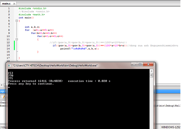 Đây là bài tìm số có 3 chữ số sao cho số đó bằng tổng lập phương các chữ số.