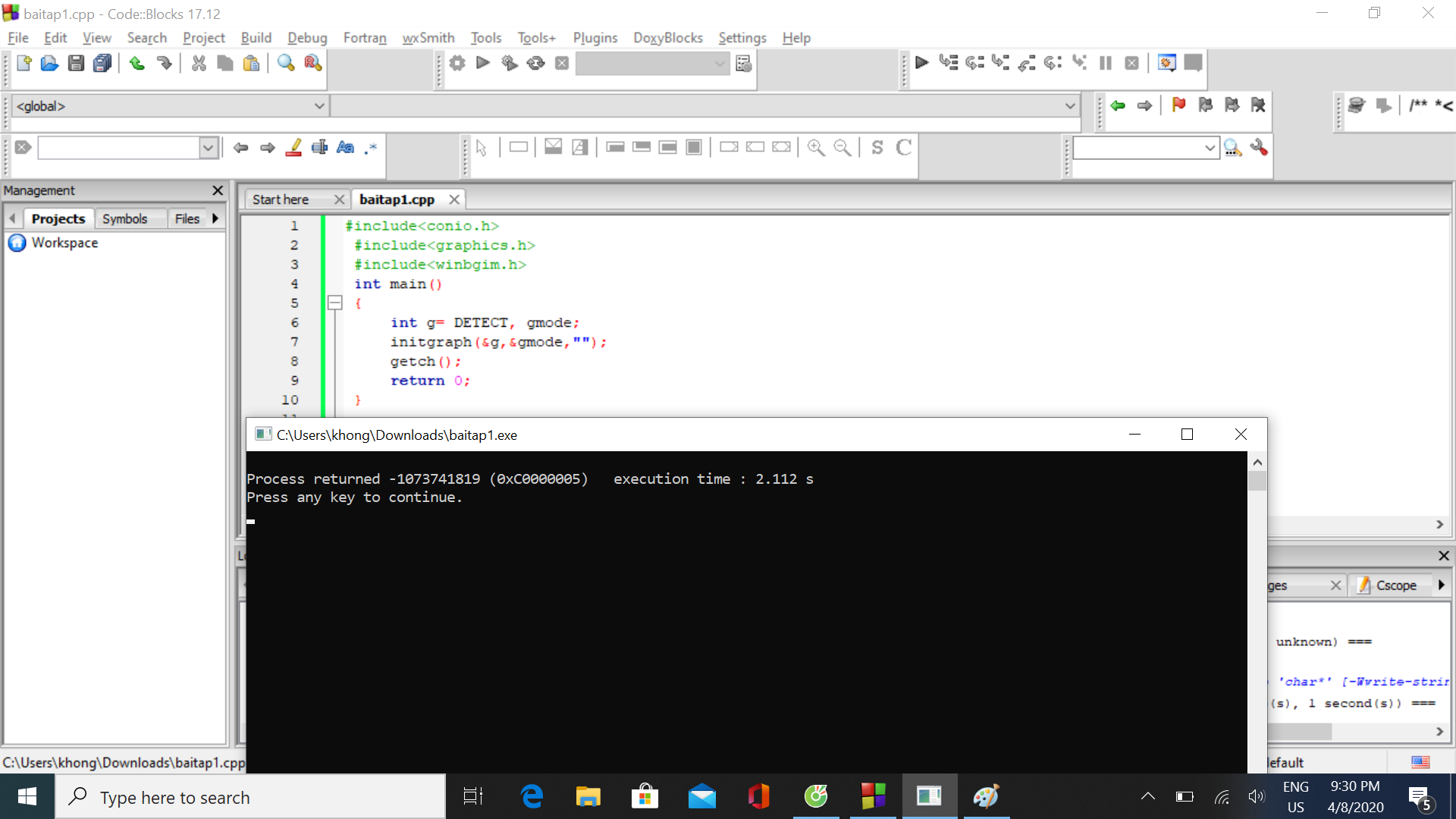 Sử dụng thư viện graphic.h nhưng không hiện màn hình đồ hoạ