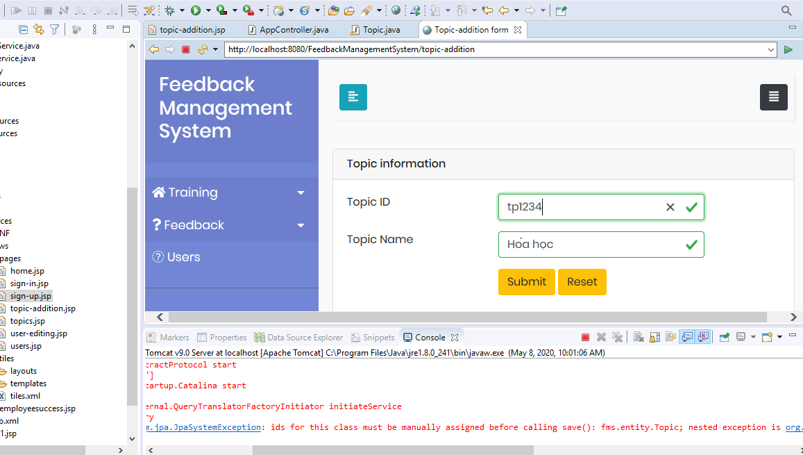 Sửa code bị JpaSystemException