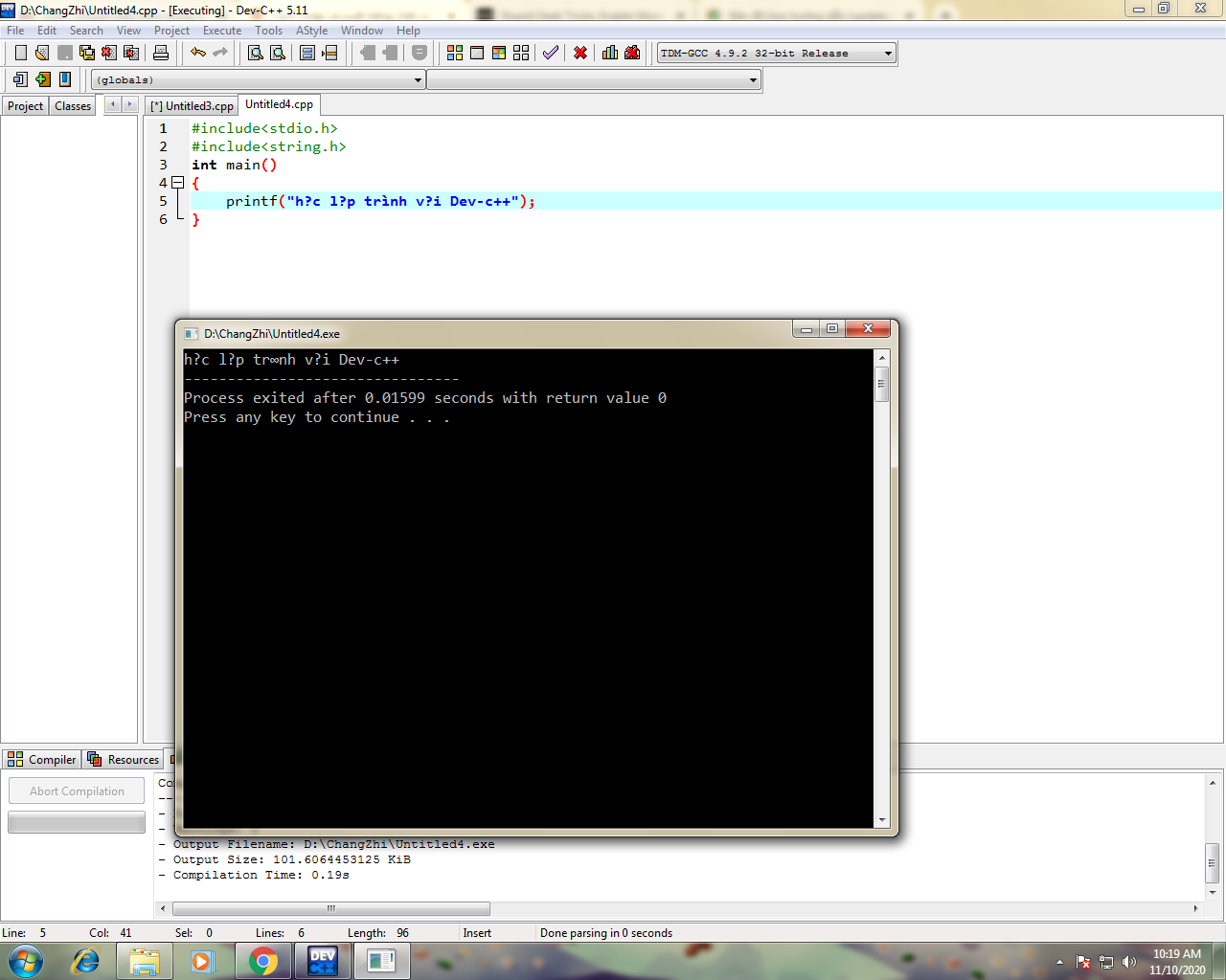mình không nhập tiếng việt vào Dev-c++ dược cũng như không xuất được tiếng việt ra màn hình, ai giúp mình với ;(