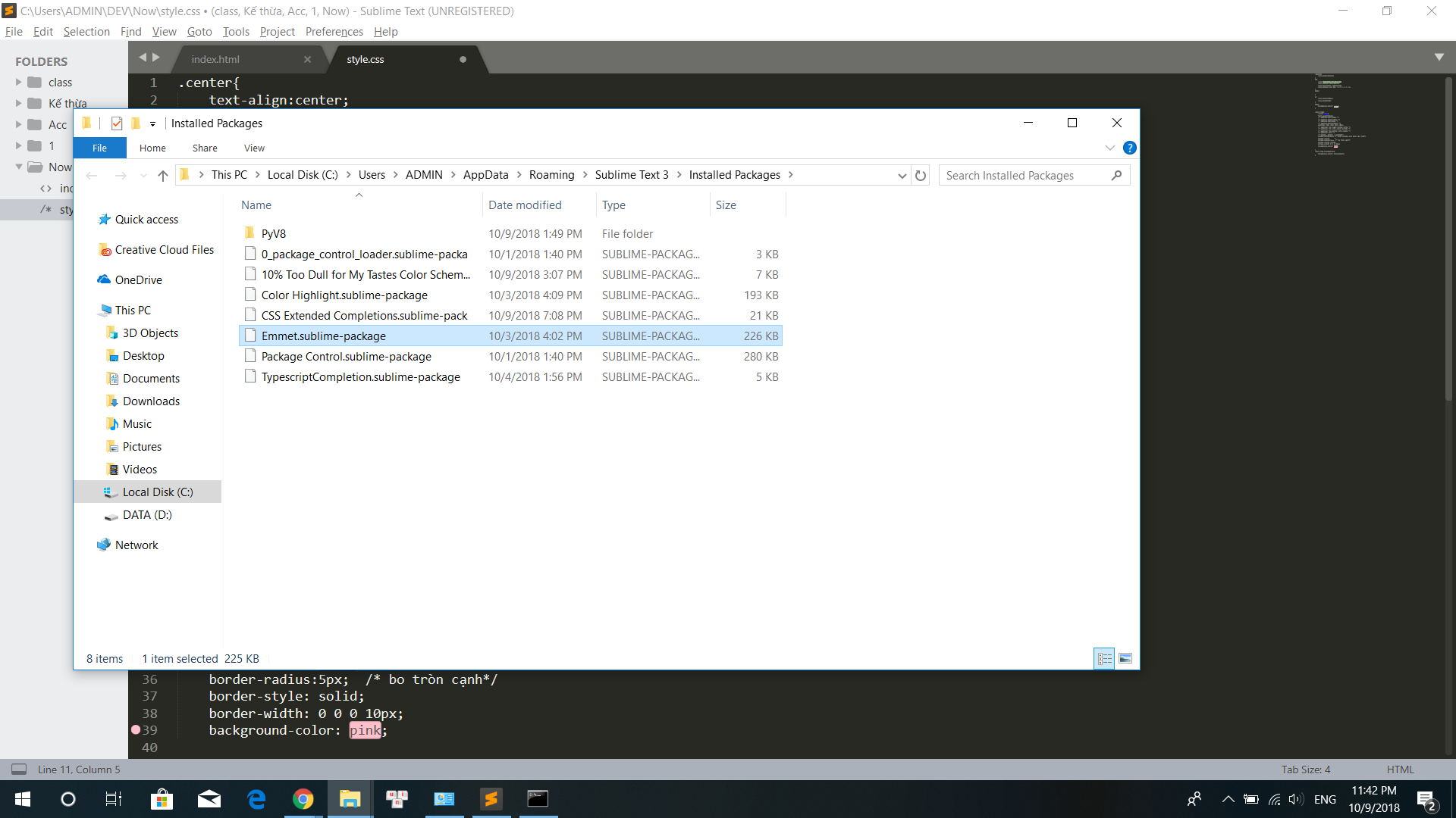 Sublime Text 3 không hỗ trợ khi code css