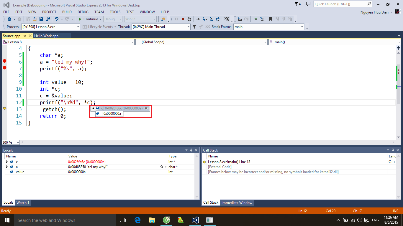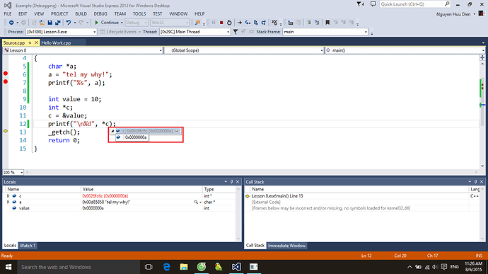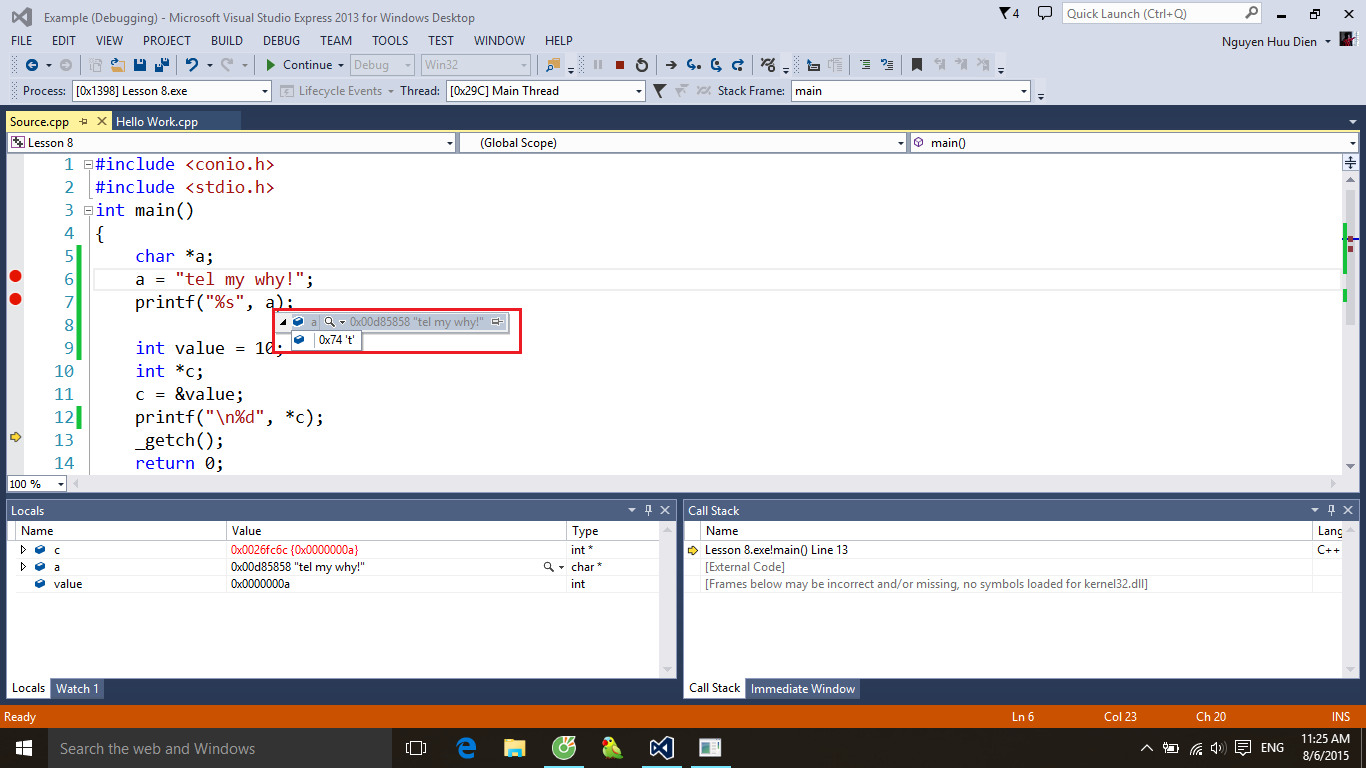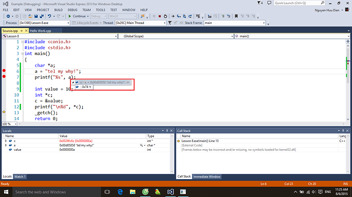 Ở đây a là con trỏ kiểu char còn “tell my why!” là hằng xâu kí tự n sẽ nằm trong vùng nhớ hằng. Phép gán này chỉ đơn giản là bạn cho con trỏ a trỏ tới địa chỉ của vùng nhớ đó thôi.