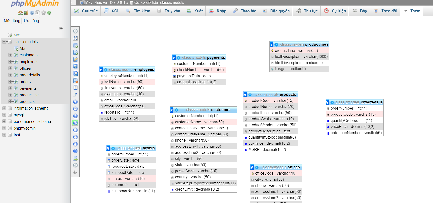 Có bạn ơi, đây là database mẫu của lớp. Mọi người đều hiện, mỗi mình k hiện