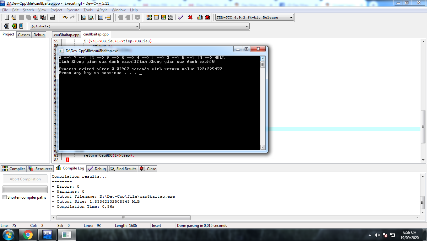 cout<<"Tinh Khong giam cua danh sach:"<<Cau8DQ(first);