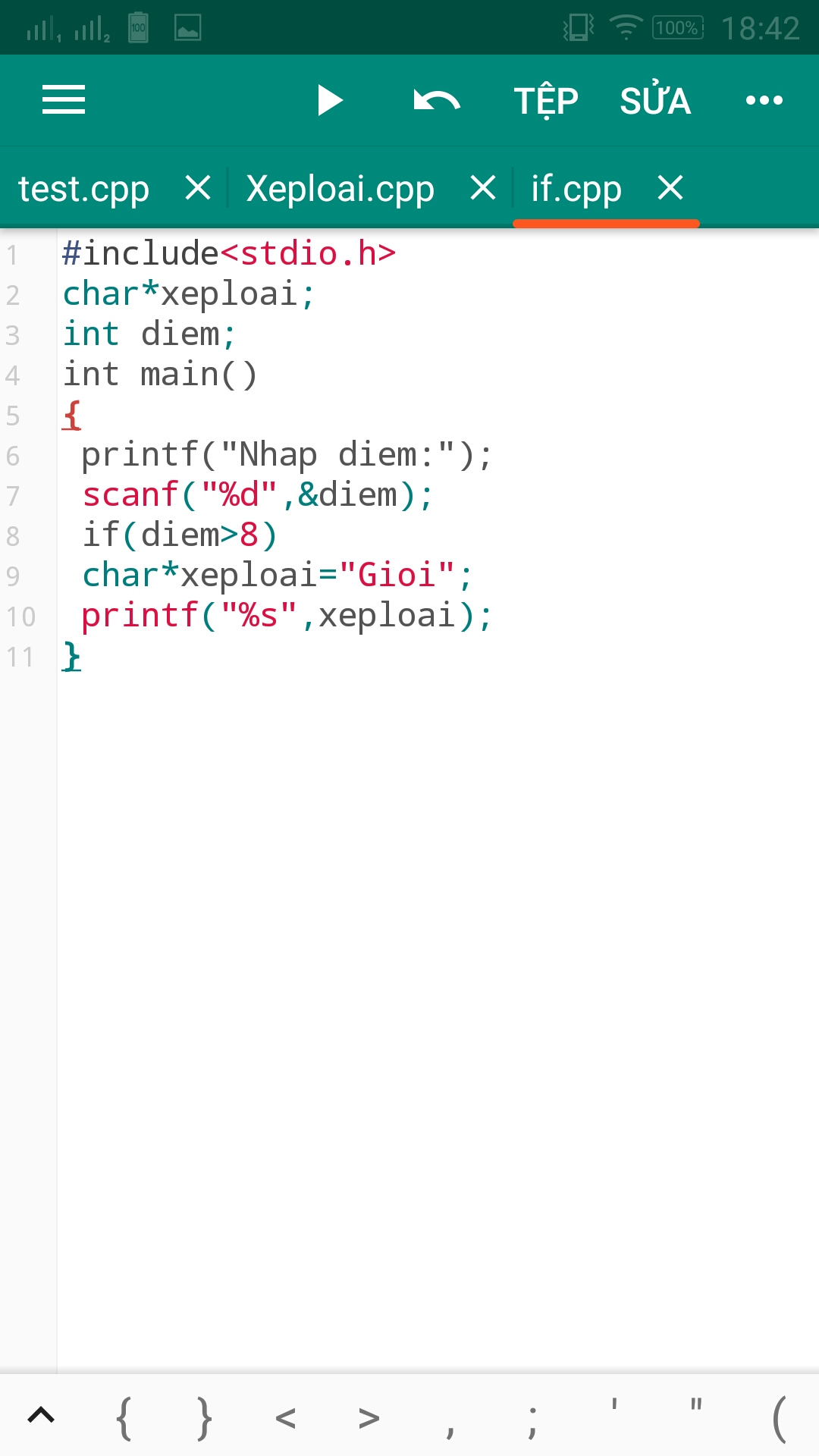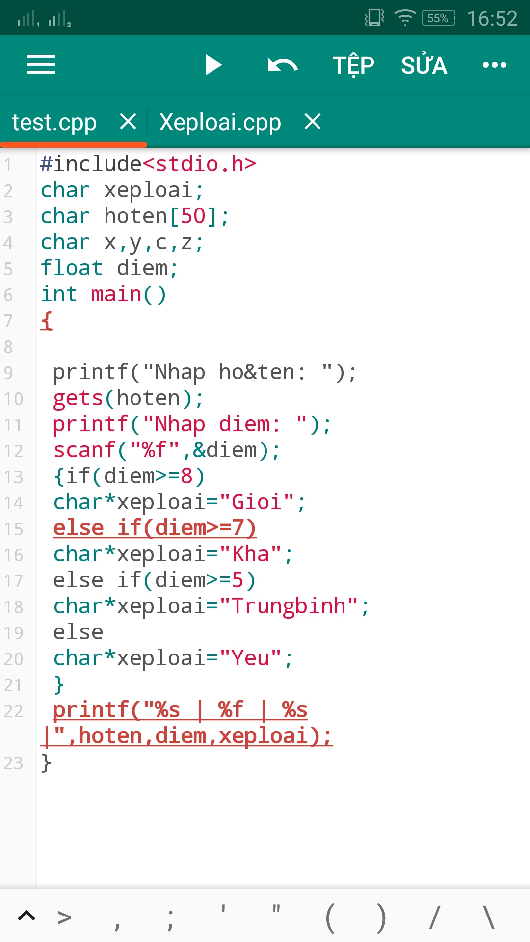 Mọi người cho em hỏi tí. Khi em gán char*xeploai="Gioi"; thì ra kết quả bình thường nhưng khi em lồng vào if thì lại ra null ạ?