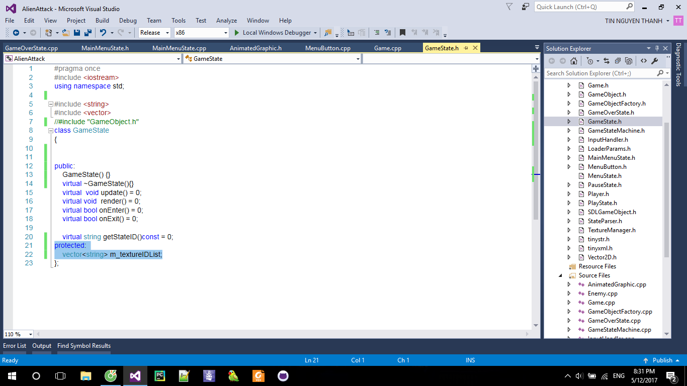 Khi thêm dòng được bôi xanh( protected: vector m_textureIDList;) thì xuất hiện lỗi, lỗi như sau: