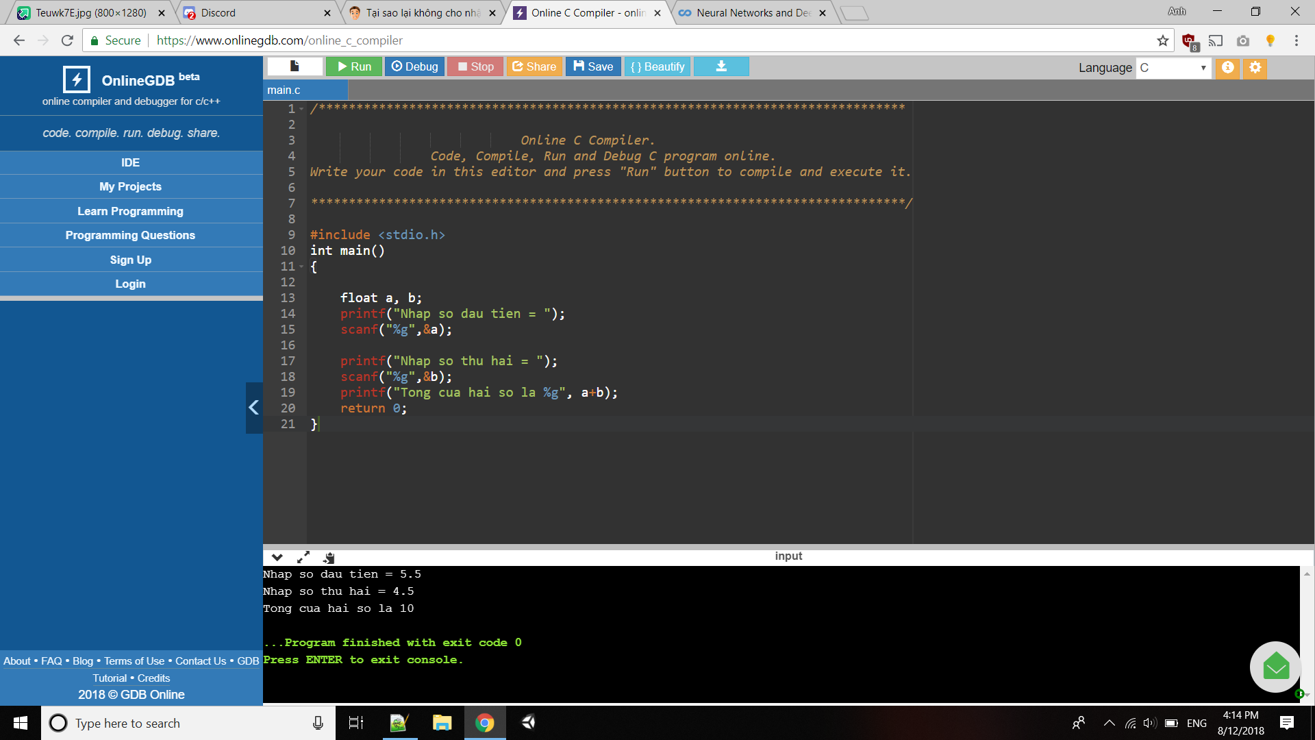 Nếu em khai báo kiểu dữ liêu của 2 biến khác nhau, thì khi nhập xong số đầu sẽ cho nhập tiếp số thứ 2. Còn nếu em để 2 biến cùng kiểu dự liệu thì lại chỉ cho nhập số đầu rồi cho ra kết quả lun ạ ?