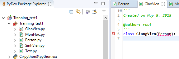 Bạn khai báo Person tức là GiangVien kế thừa từ class Person trong file GiaoVien.py, phải gọi