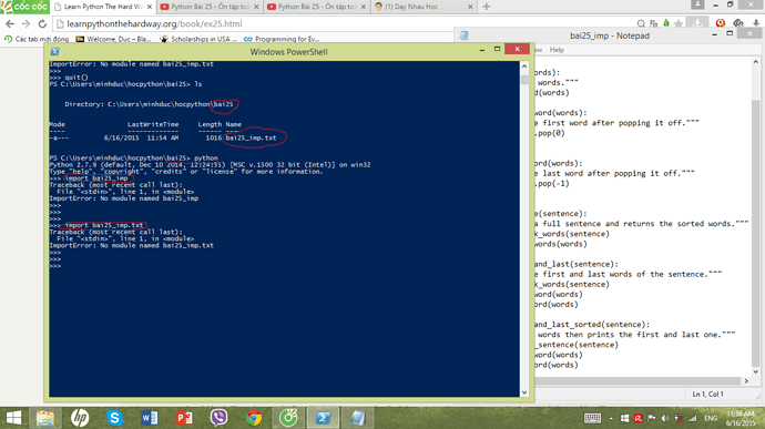 như mình nói trên mình tạo một thư viện “bai25_imp.txt” để import nhưng khi import lại bị lỗi