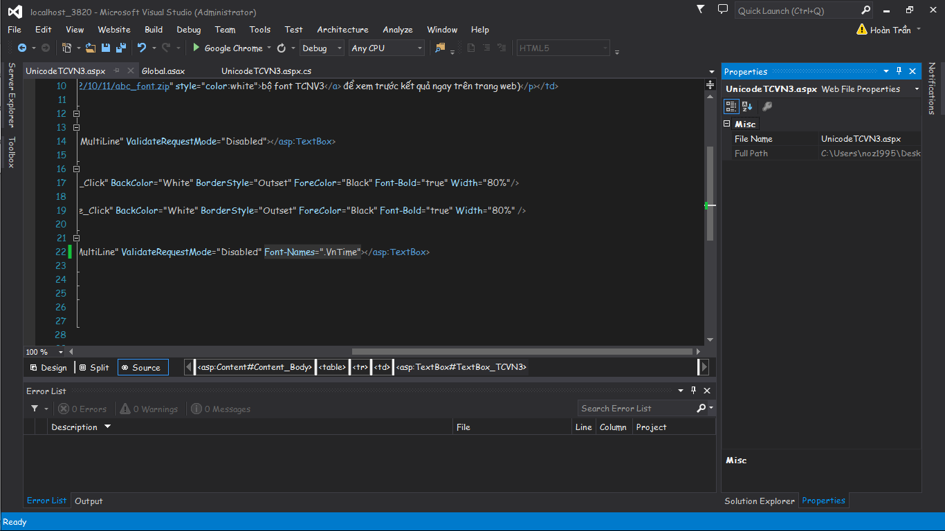 Mình có một asp:TextBox muốn cho hiển thị font .VnTime