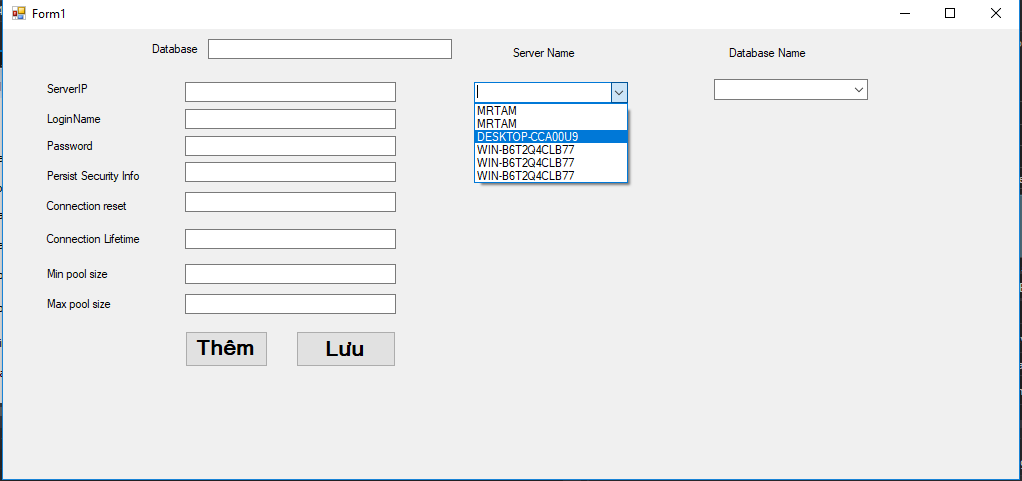 Tạo combobox để chọn database thì làm sao?