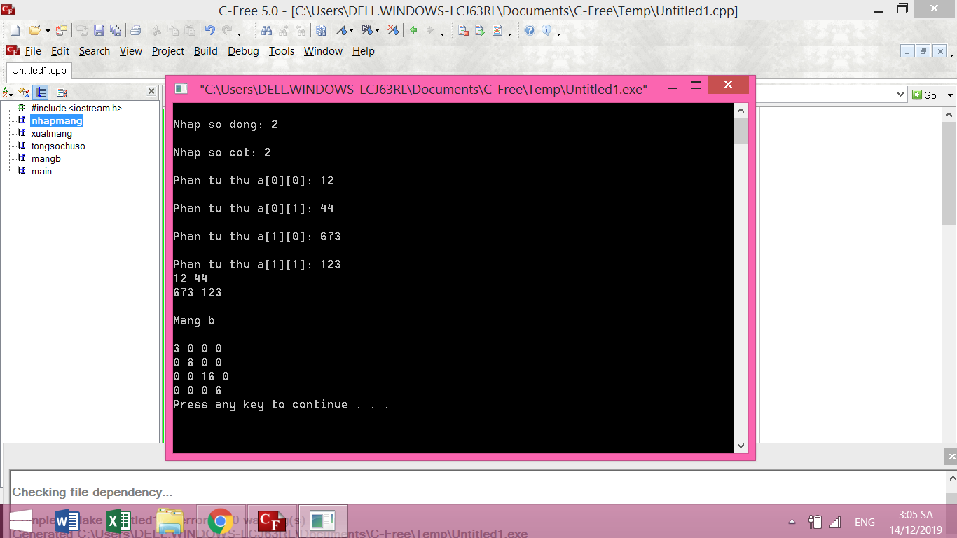 Chạy thì đúng nhưng mà 1 nó lại xuất ra cái ma trận lớn gấp n^2 lần cái ma trận đầu với các phần tử cần tìm chạy theo đường chéo chính và các phần tử xung quanh đều bằng 0, xin mọi người cách khắc phục vấn đề này ạ